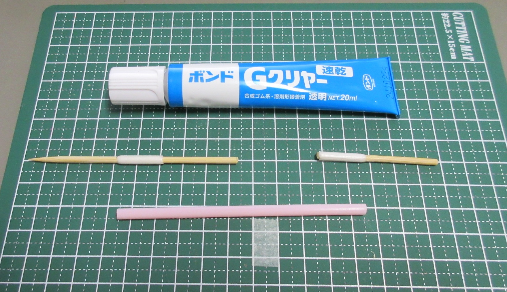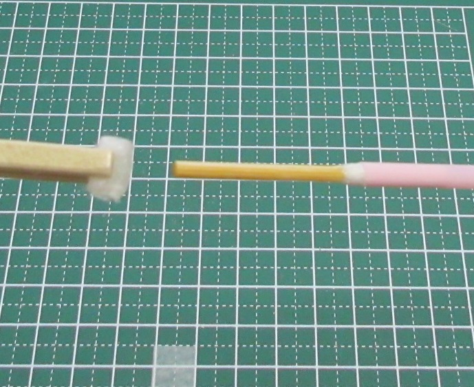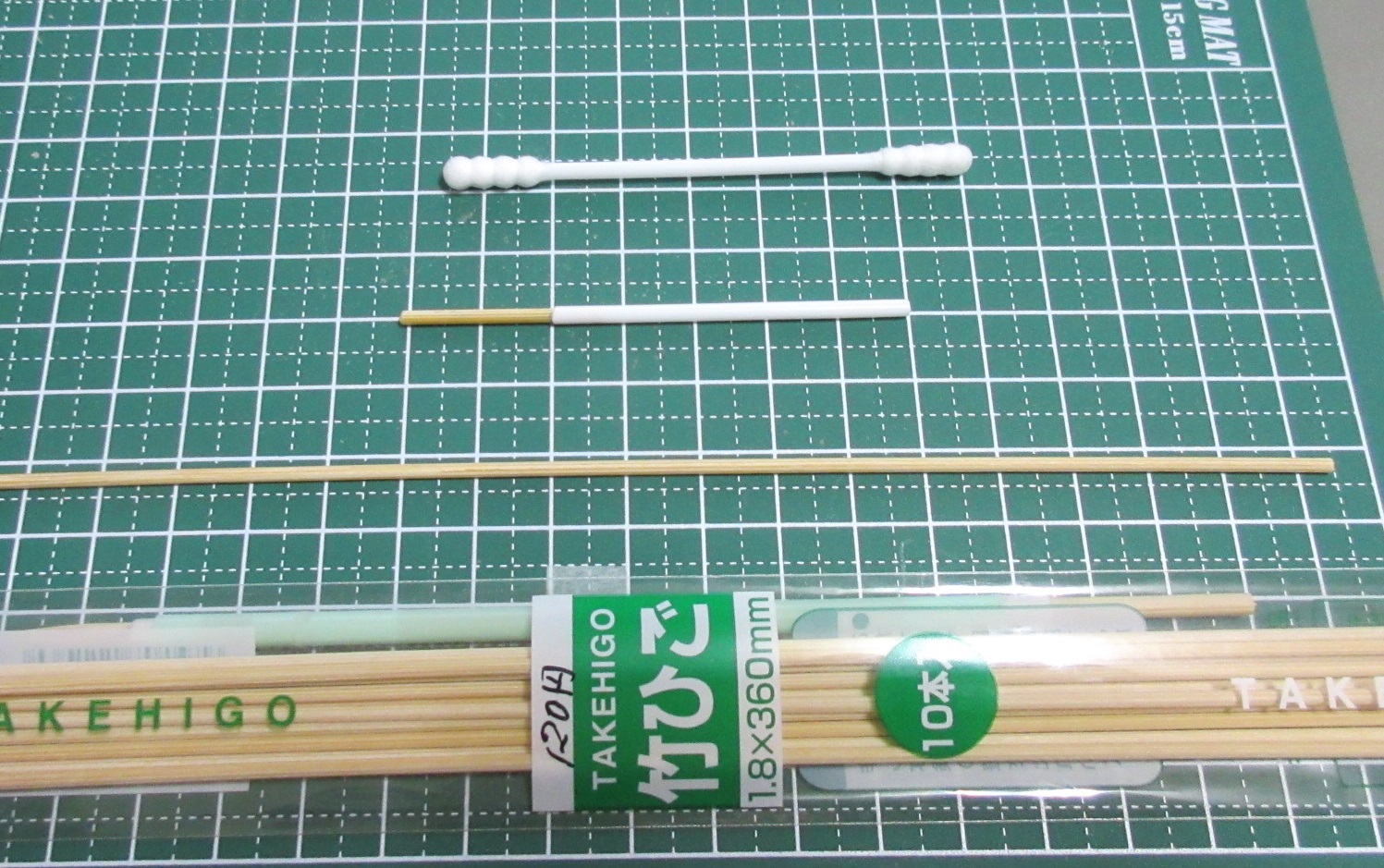 この竹ひごの1.8mmφは偶然綿棒パイプの穴にぴったり入った
