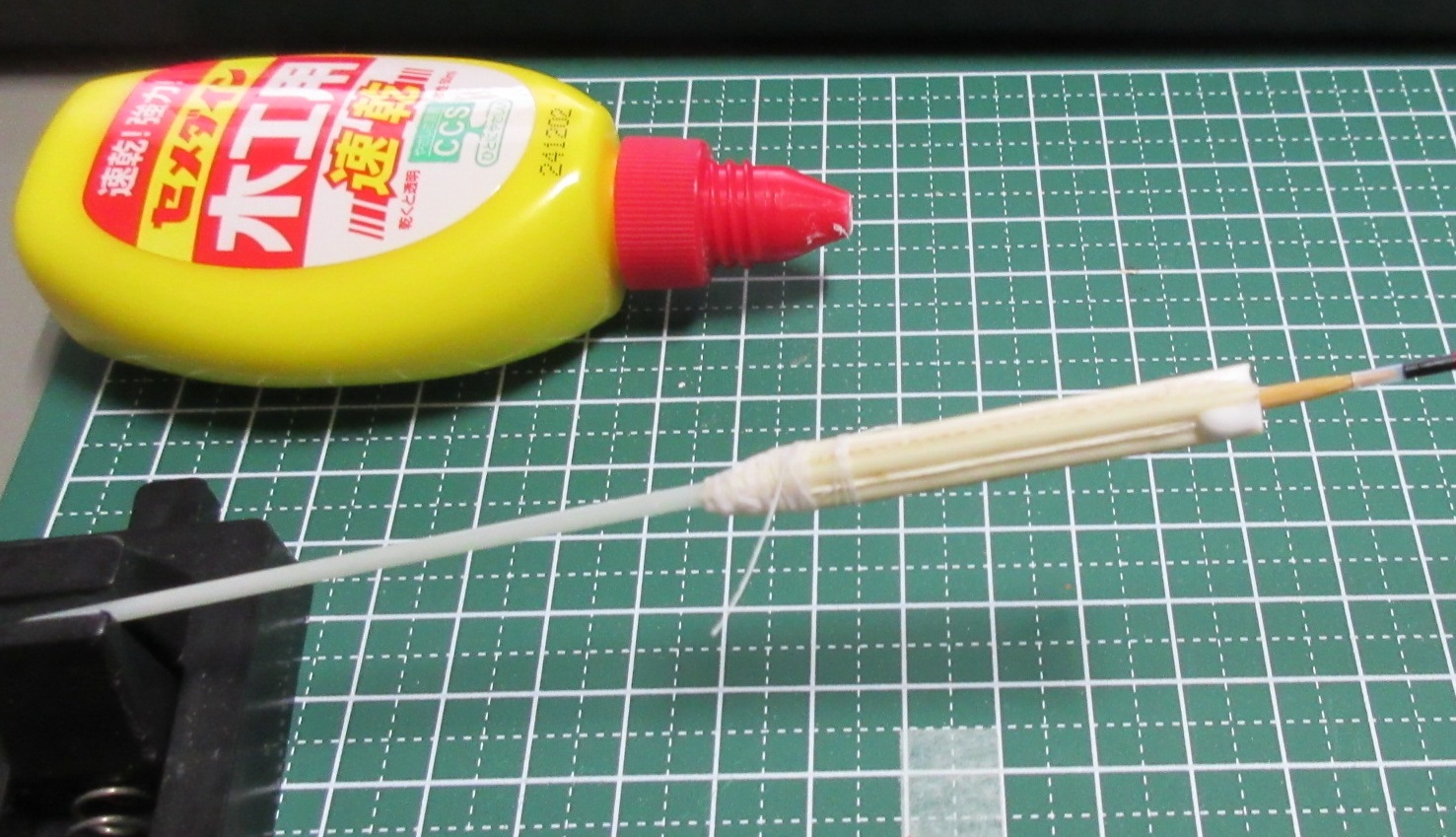 なるべくセンタになるように棒を突っ込んでボンドを入れて糸で巻く