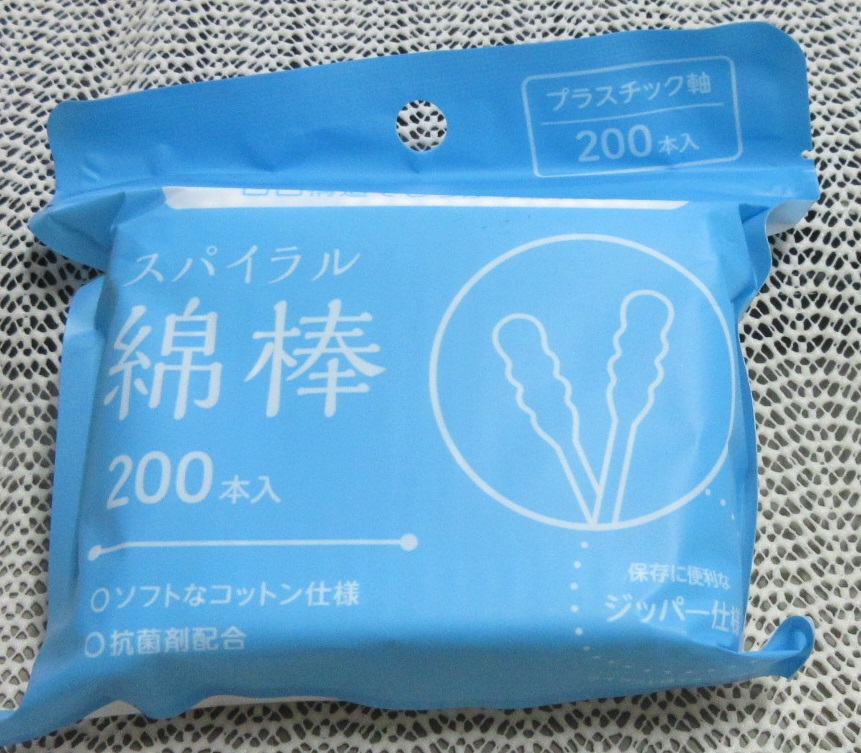 綿棒(プラスチック軸)、軸をトップに使える、100均(Seria)