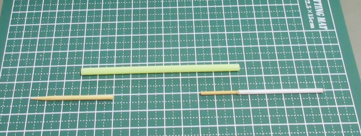 ストロー9.5cm、竹串の軸足5cm(内2cm差込)、綿棒軸のトップ5cm