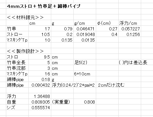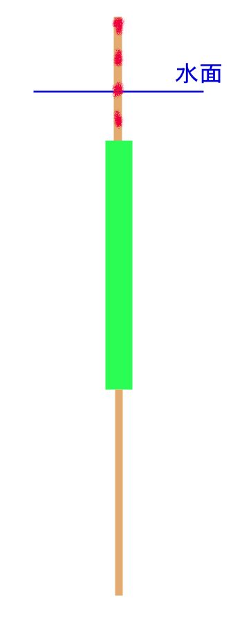 ここで設計したストロー+綿棒パイプでは水面から出るトップ長は