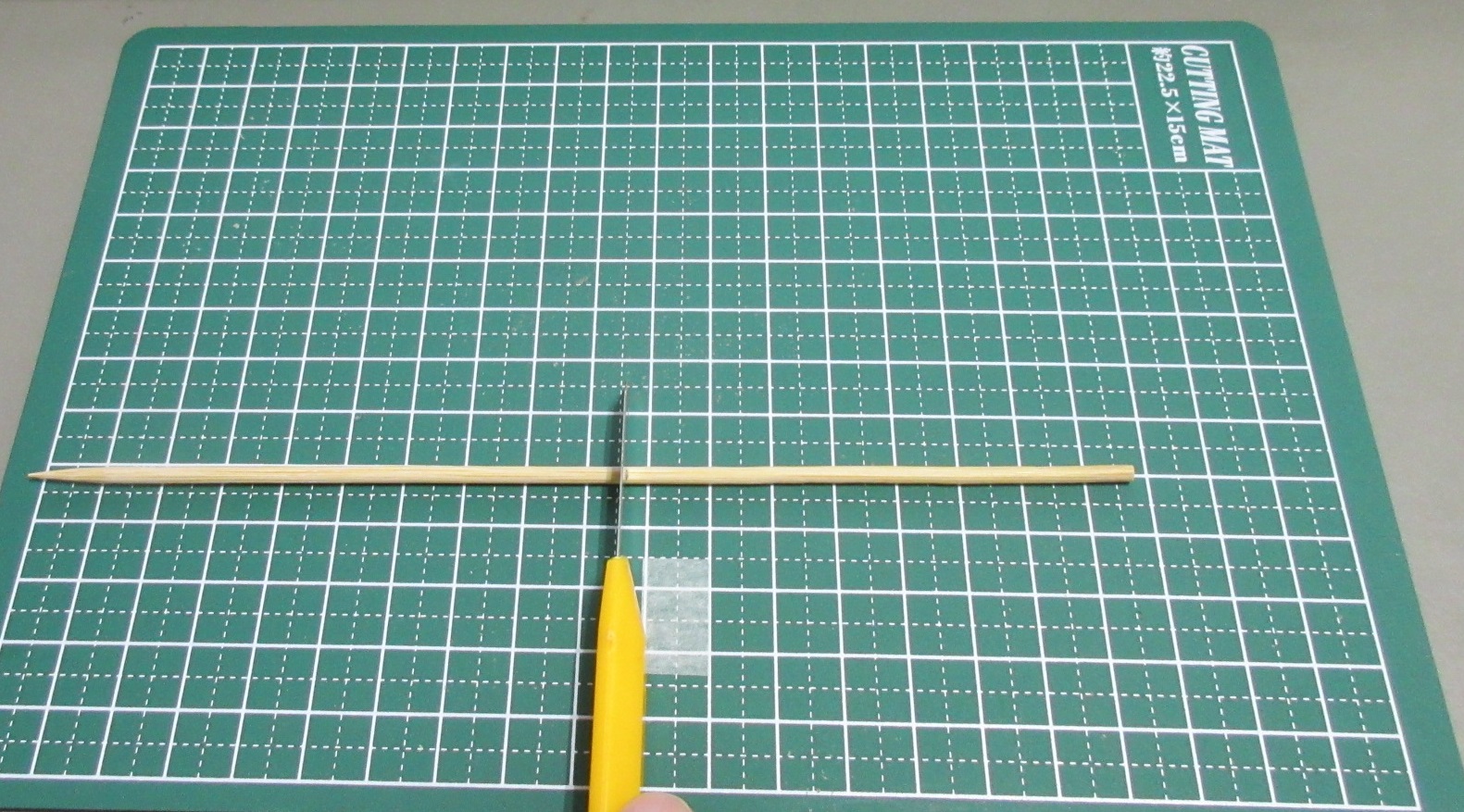 設計どおりにストローも切断して、設計どおりに切った竹串に