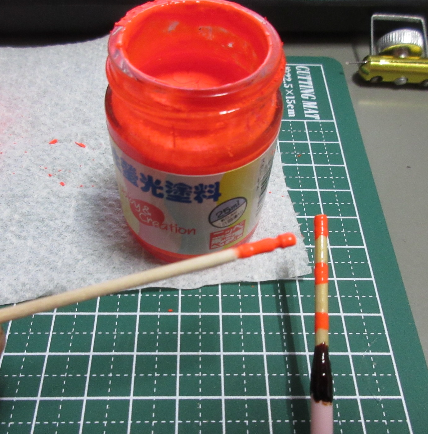 トップに蛍光塗料を塗る、5mm〜7mm間隔でつまようじで塗る、