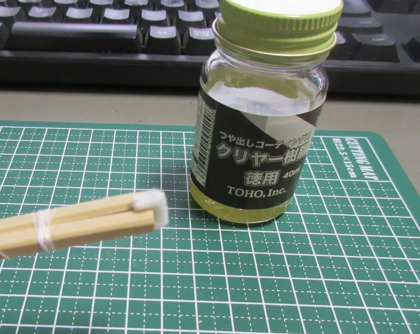 竹串が固定できた、ボンドがはみ出た部分などは爪できれいに除去する
